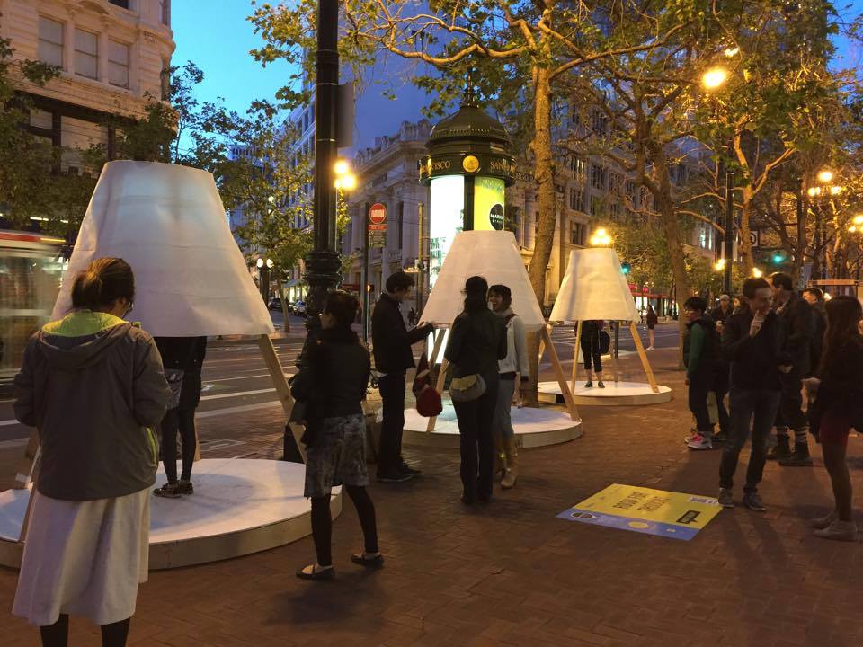 Entangled Pods is a public social experiment using random-number generators (RNGs) to explore the relationship between people and the color shown and how we might unconsciously affect the colored light outcomes. We previously ran one in downtown San Francisco on Market Street.