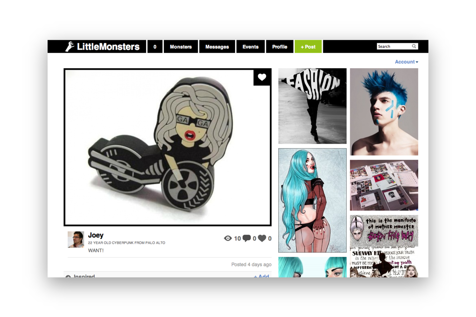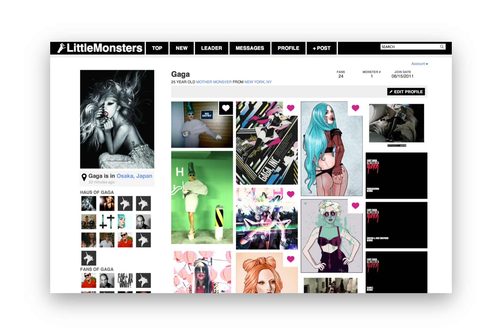 Collaborated with artist Lady Gaga and created LittleMonsters.com, an online creative community for the super-fans to come together to share, create and inspire.